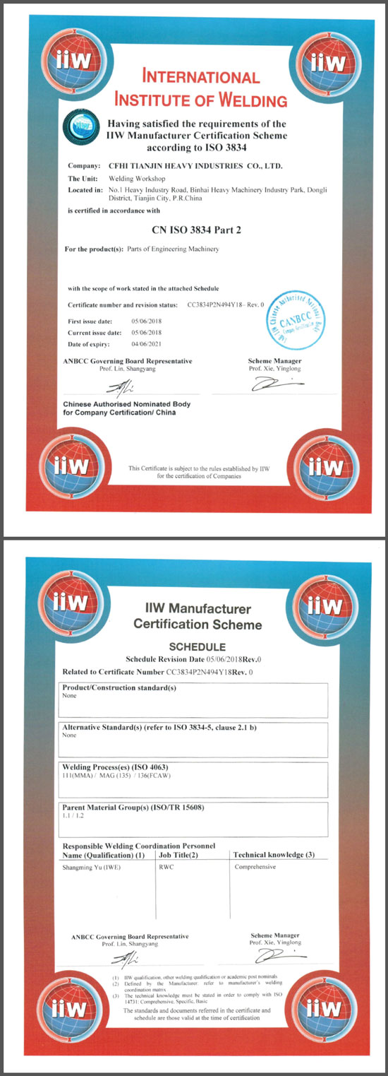 此證書(shū)由國(guó)際焊接學(xué)會(huì)(INTERNATIONAL INSTITUTE OF WELDING)頒發(fā),標(biāo)志著企業(yè)質(zhì)量管理體系符合ISO 3834-2標(biāo)準(zhǔn)要求