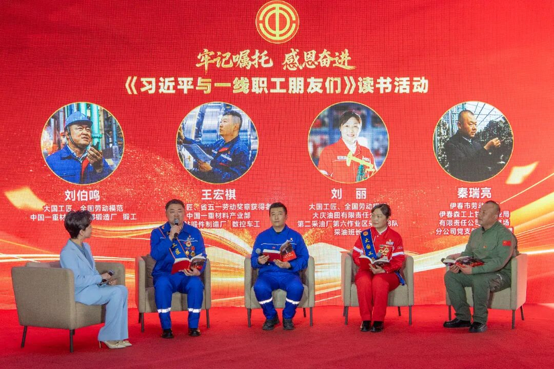 ? ? ? ?活動邀請書中受訪的中國一重勞模工匠代表劉伯鳴、王宏祺和黑龍江省優(yōu)秀職工代表秦瑞亮、劉麗,以“當(dāng)年人講當(dāng)年事”的形式,再現(xiàn)了習(xí)近平總書記心系一線職工、謳歌勞動創(chuàng)造的感人故事,生動展現(xiàn)我省職工牢記囑托、感恩奮進(jìn)的創(chuàng)新創(chuàng)造。訪談嘉賓帶領(lǐng)現(xiàn)場觀眾共同朗讀書中的深切勉勵和殷切期望,共同感悟思想偉力。鏗鏘有力的聲音,是在場職工奮斗的誓言,更是廣大一重職工前進(jìn)的號角。